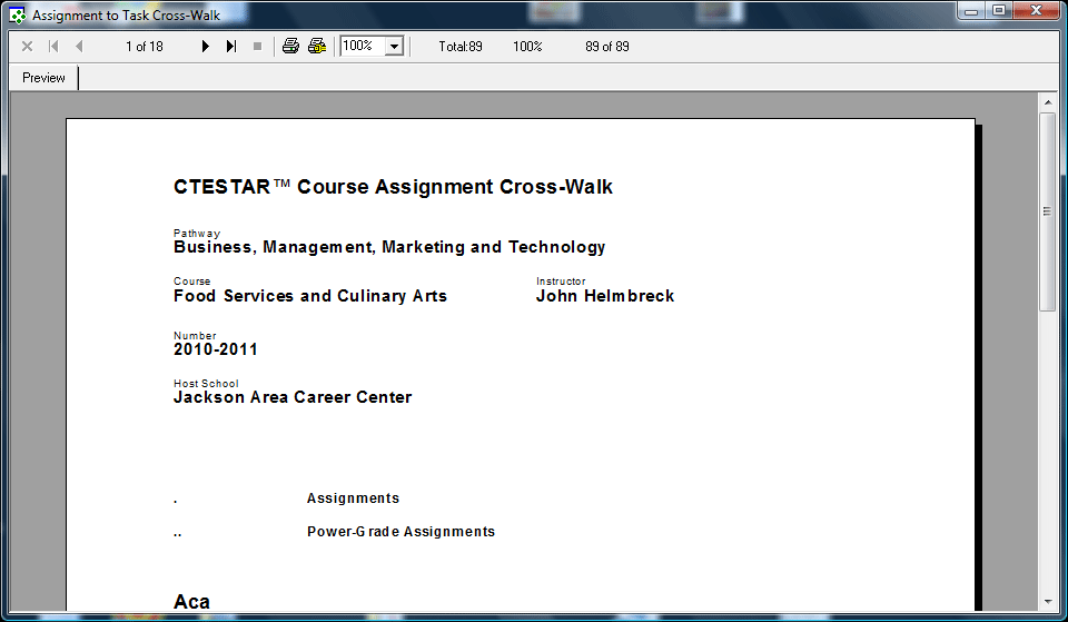 The purpose of the Assignment Cross Walk Report is to document the relationship between the assessable tasks in the Task List and the